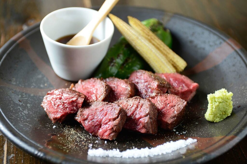 桜島の溶岩プレートでジュウジュウ焼いてお好みの焼き加減でどうぞ!
